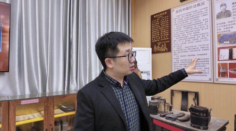 今年初,该非遗技术的第五代传承人吴汉卿登上了央视《中国中医药大会》的舞台,展现了筋骨针的神奇疗效。现场,吴汉卿之子、吴氏中医针法第六代传承人吴军瑞,向采访团介绍了该技艺在学校的传承情况。