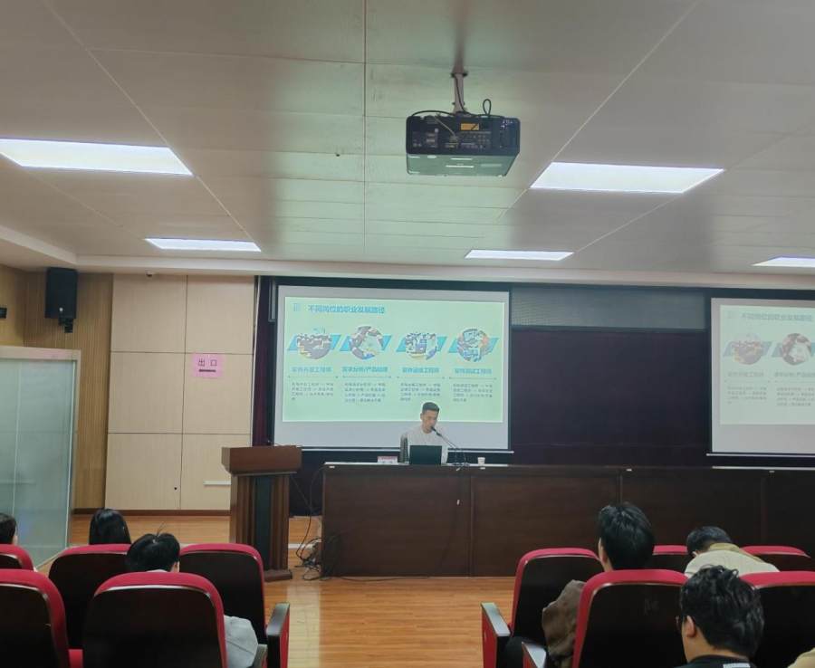 在讲解过程中,蒋鹏飞还结合自身科研经历,鼓励师生们既要扎根专业知识学习,更要敢于怀揣科技梦想、勇于探索未知领域,将理论所学与实践需求紧密结合。师生们认真聆听、积极提问,在与行业专家的交流中,不仅填补了对空间信息技术实际应用场景的认知空白,更对“科技报国”的内涵有了更具体的理解。