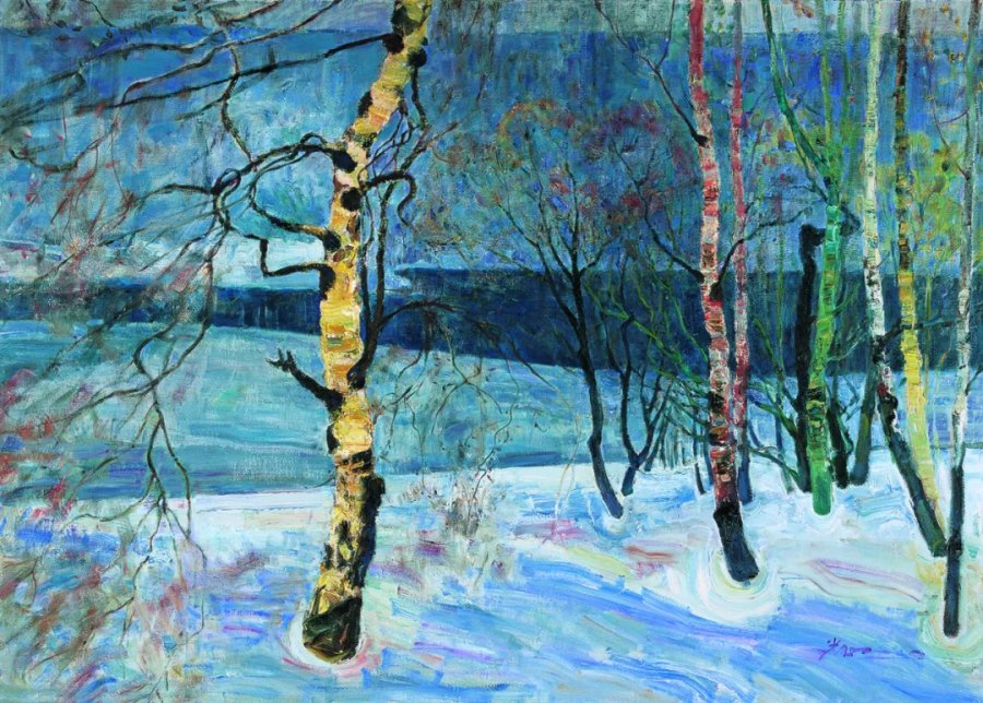 在中国油画的发展与创作历程中,在二十一世纪的今天,郑光旭的作品呈现出比较成熟的状态。他不仅有效继承了俄罗斯现实主义与写意表现的创作手法,也在作品中展现着中国的风土人情、自然风貌;对专业规律与理论的探索也体现出他在创作之路上的成熟与人文研究的积淀。在使用欧洲艺术形式语言的同时,深切的反映出东方的精神与生命理想的独特味道。
