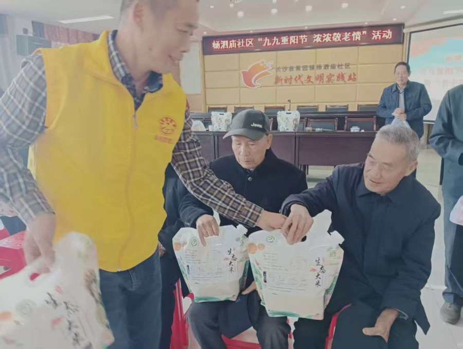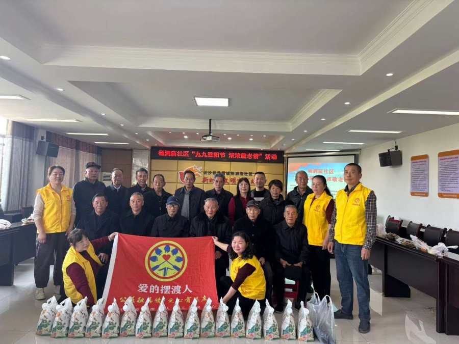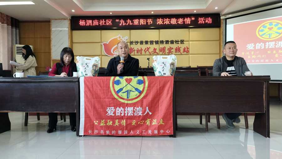 金秋送爽,重阳将至。为弘扬中华民族尊老、敬老、爱老、助老的传统美德,丰富农村老年人的精神文化生活。10月23日,长沙县爱的摆渡人义工发展中心联合长沙县果园镇杨泗庙社区携手长沙邦众生态农业发展有限公司、养天和大药房鑫芝店、长沙县慢天使企业服务有限公司、果园镇邮储银行和果园镇中心幼儿园在果园镇杨泗庙社区党群服务中心举办了文明实践我行动“厚德星沙 益路同行”长沙县果园镇“我在新时代文明实践站过重阳”主题活动,吸引了数十位社区长者踊跃参与,现场欢声笑语,其乐融融。