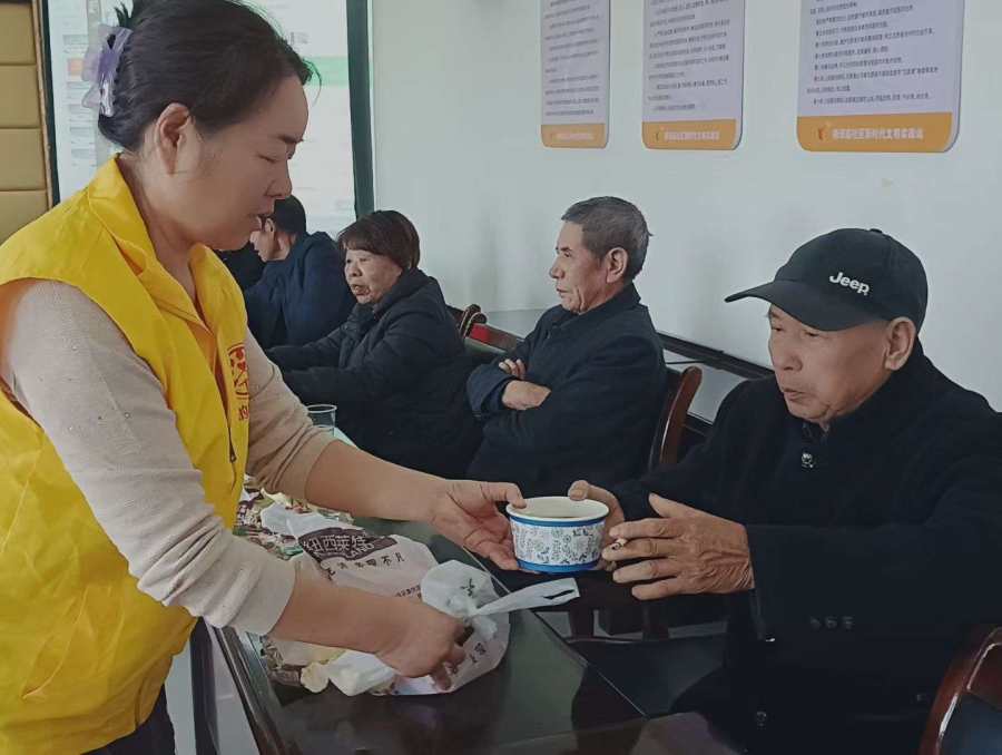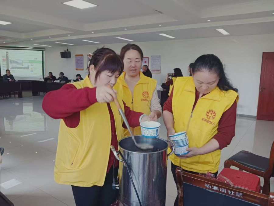 上午八点,爱心义工们就来到养天和大药房一起帮忙剥鸡蛋,准备爱心物资。现场熬制了一大锅热气腾腾的乌鸡汤。九点整,大家带着爱心物资和乌鸡汤来到果园镇杨泗庙社区党群服务中心,多方爱心力量汇聚成敬老暖流。