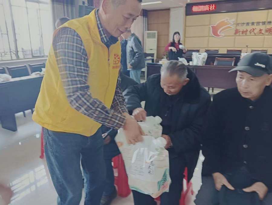 义工们现场为老人送上长沙邦众生态农业有限公司赞助的爱心大米和长沙县慢天使企业服务有限公司捐赠的保健腰带与果园镇邮储银行提供的洗洁精等生活物资。接下来,老人们一边喝着营养美味的乌鸡汤一边观看由果园镇中心幼儿园的小朋友们带来《奔腾的骏马》和《中华孝道》等精彩的文艺节目,孩子们充满童趣的表演赢得老人们阵阵掌声。