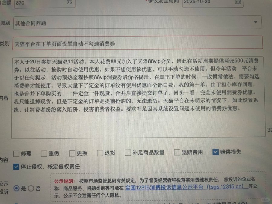 特别是对于活动机制不合理、规则模糊、优惠“货不对板”的问题,有消费者直言,平台行为可能涉嫌消费欺诈和违背合同义务,自己已经开始投诉维权。但在表达内心的愤怒之外,消费者天然的劣势地位导致取证困难、维权有门槛,而消费者得到的结果也只有被“拿捏”。