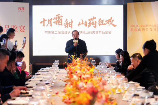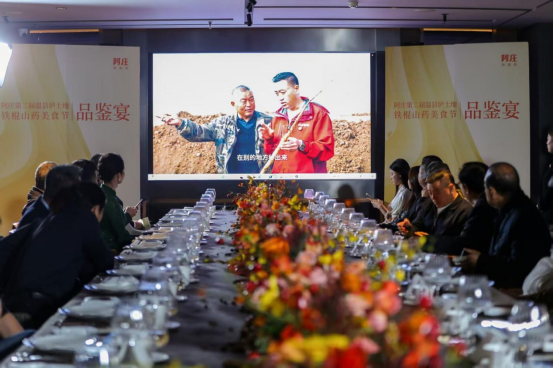 本次活动汇聚了餐饮行业领袖、非遗传承人、媒体代表及种植农户等众多嘉宾,以国家地理标志产品温县垆土地铁棍山药为核心,通过纪录片展播、产地溯源分享、菜品品鉴等环节,全方位展现阿庄对“好食材”的坚守与新豫菜的创新魅力。