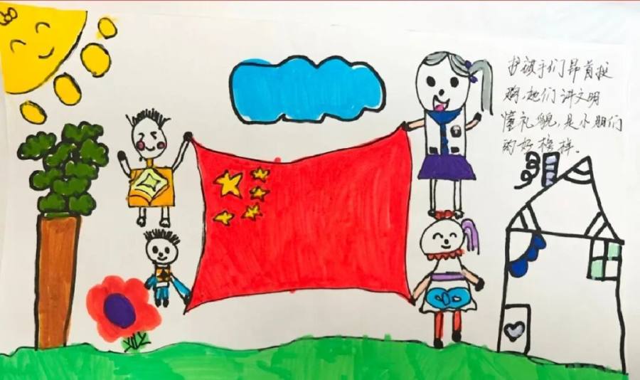 在大班的“创意手工课”上,我们没有直接规定评委牌的样式,而是先通过绘本《闪闪的红星》帮孩子们理解“红星”的意义。当孩子们主动提出“要画五角星,还要加红飘带,因为飘带像国旗的颜色”时,我们真切感受到,孩子们对“国家象征”的认知虽显稚嫩,却已自然萌发对国家的朴素情感,这正是《指南》中“引导大班幼儿感知国家标志意义”目标的生动体现。(大三班邓占宁老师)
