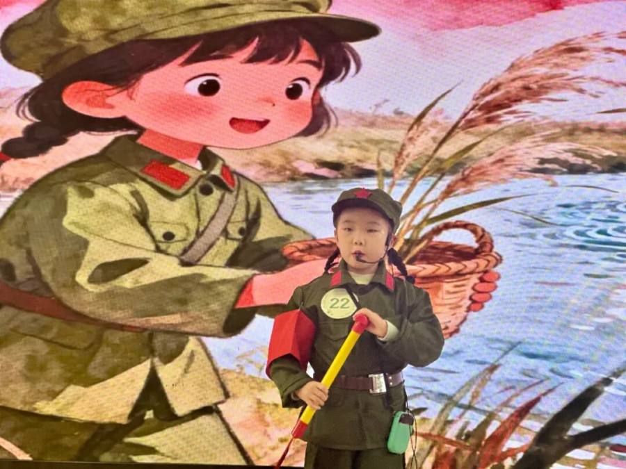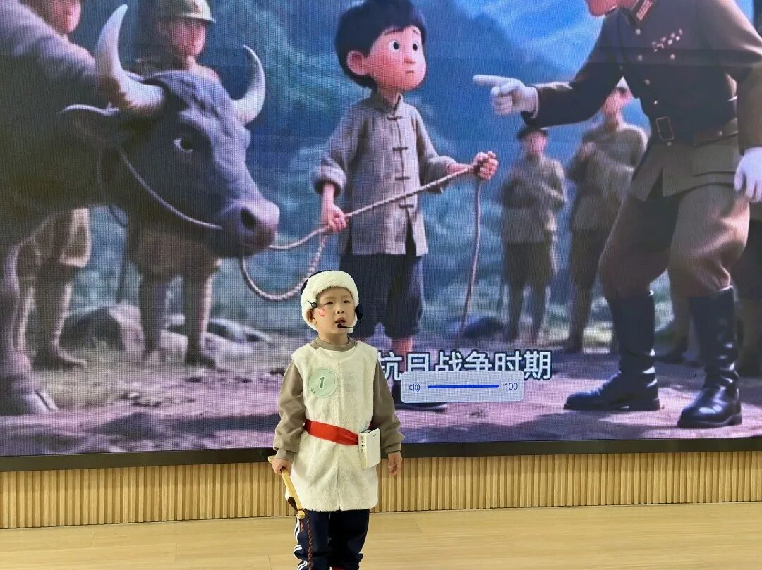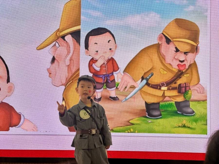 孩子们穿着自制的“八路军”服饰,用脆亮的嗓音讲述《小兵张嘎》,讲到关键情节时扬起小拳头,把嘎子的勇敢机灵展现得淋漓尽致——这是“肢体语言表达”活动的实践成果。