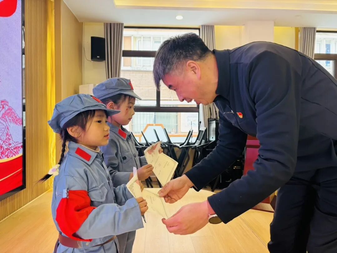 到了给小朋友们送 “红色小奖励” 的环节啦!常凤丽老师轻轻接过奖状,一张一张送到小朋友手里。看着奖状上 “红色小传人” 的字,小朋友们都露出了开心的笑脸,这是对大家认真听、认真讲红色故事的最好鼓励。