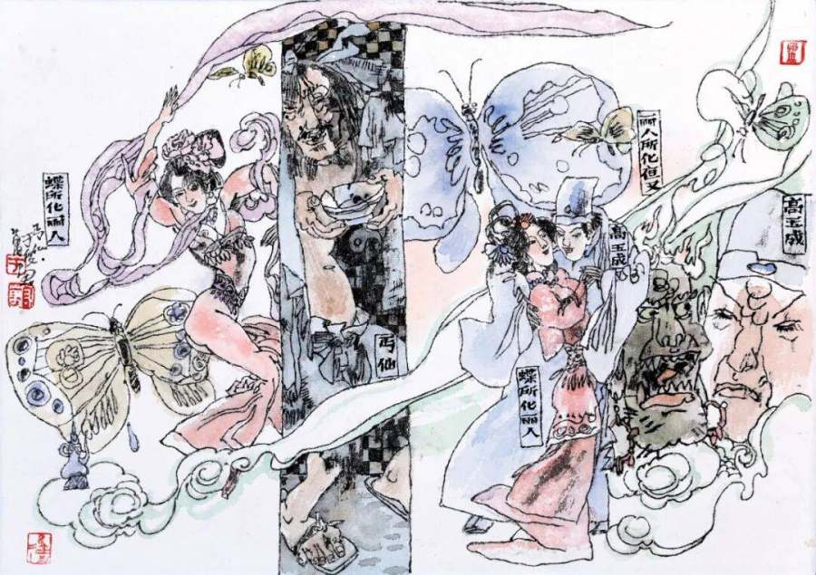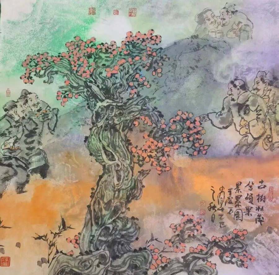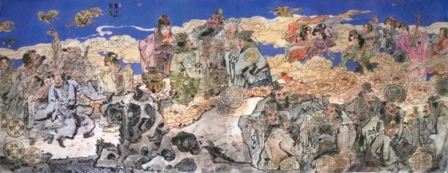 山东有两个人物,可以作为艺术家内心的表率,一个是孔子,孔子是中国典籍文化、庙堂文化的代表,孔子是有规矩、有礼数。另外一个是《聊斋》蒲松龄,蒲松龄是非常想象的,有鬼气的、有仙气的,把人的庄严世界和仙的灵动世界,融汇一起,结合的天衣无缝。这构成了于受万先生内在的文化传统和美术创作背景。他画《孔子周游图》时,又把孔子反其道而行,以往所有画孔子都是庄严的、肃穆的、高深而不可及的,是直线条的、衣服垂下去的。于先生画孔子和弟子都兴高采烈,充满了动态感。孔子和其弟子们以平常人的姿态,其喜怒哀乐出现在我们面前,这种见解和表现是很不容易的。所以山东这块历史文化非常深厚的土地,以孔子的庄严和控制力,以蒲松龄的想象力、鬼气、仙气,鬼斧神工造就了于受万先生,他是一个将深厚的历史文化底蕴集于一身的画家。