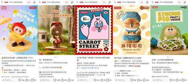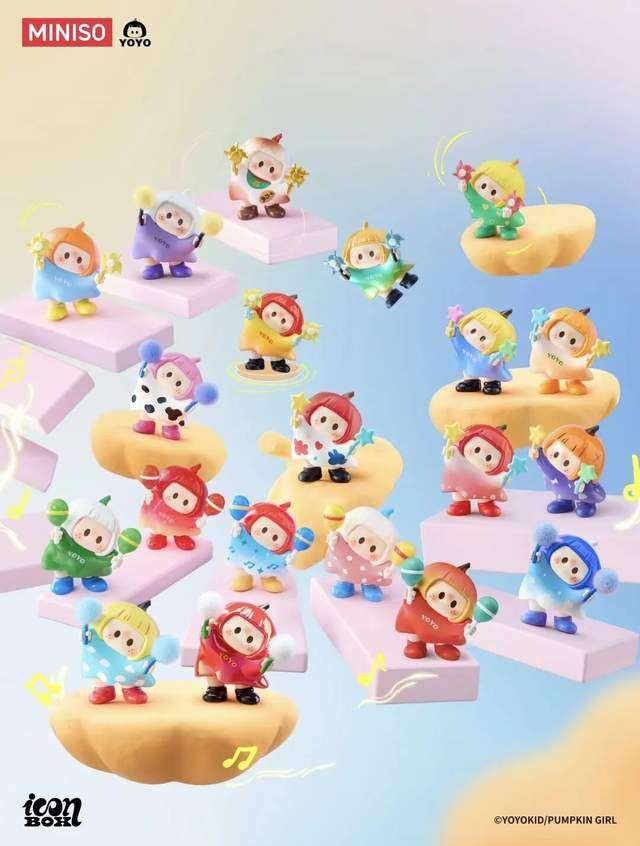 剁椒Spicy观察发现,今年下半年起,名创优品正在密集推出签约的艺术家IP商品,包括南瓜头小女孩“右右酱”、小熊KUNARU、Carrot Street 萝卜街、麻糬嘭嘭、猪坚强等IP产品。其中,表现最为惊喜的当属“右右酱”,首批盲盒产品推出后,大量门店迅速售罄,单价29元的小盲盒产品,部分热门款溢价飙升至100元以上。