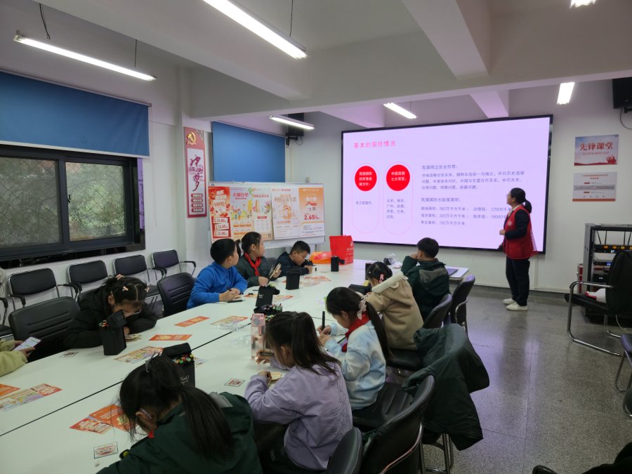 活动伊始,社区志愿者以生动通俗的语言,为在场孩子开启“国防小课堂”。从“国防是什么”的基础提问切入,志愿者清晰讲解:国防是守护国家领土、主权,抵御外部风险,保障人民生活安稳的“安全屏障”,小到日常出行的平安,大到国家发展的稳定,都离不开国防的支撑。随后,志愿者结合简单易懂的案例,介绍我国当前国防建设的重要成果——从守护海疆的军舰,到翱翔蓝天的战机,再到守护边疆的战士,让孩子们直观感受“国防不是遥远的概念,而是就在身边的守护”。最后,志愿者还简要梳理了我国国防建设的关键历程,从过去的“保家卫国”到如今的“强国强军”,一个个小故事让孩子们眼中满是崇敬,也在心中悄悄种下“守护家国”的种子。