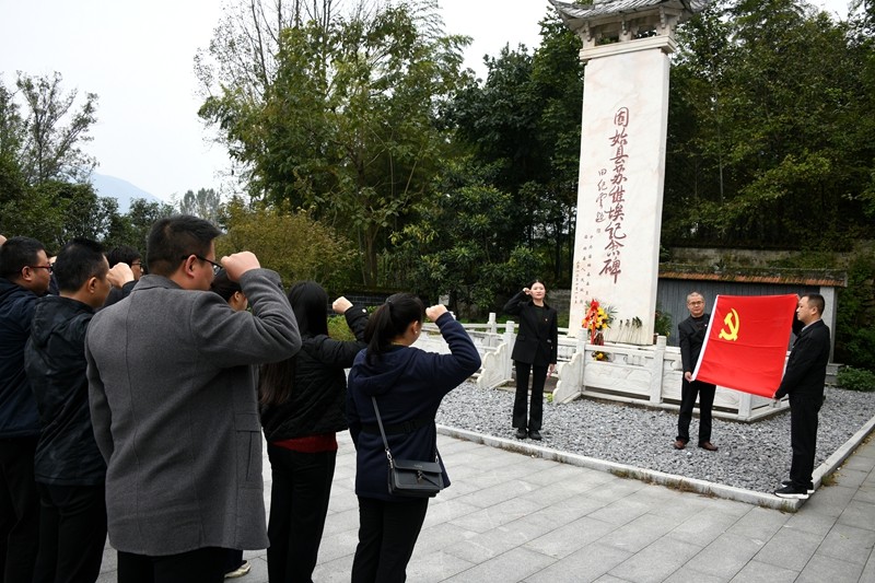 随后,前往中国工农红军第二十八军坚持三年游击战争纪念园。在专业讲解员的引导下,党员干部深入学习了这段特殊历史:在敌我力量悬殊、物资极度匮乏、环境极端恶劣的条件下,红二十八军紧紧依靠人民群众,灵活运用游击战术牵制敌军,不仅有力策应了主力红军长征,更在艰难险阻中守护了革命火种。这段浴血奋战的历程,让在场人员深刻体会到“星星之火,可以燎原”的信念伟力,对革命先辈的坚韧与无畏肃然起敬。