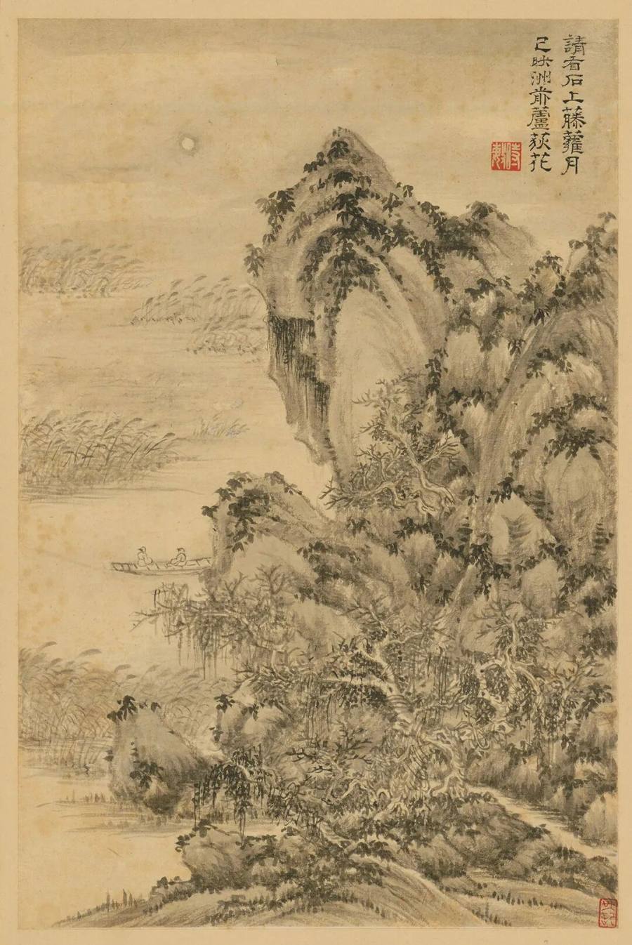 该图册系清康熙四年(1665)王时敏为外甥董旭咸绘杜甫诗意山水,每开上均有画家书杜甫七言诗一句,王时敏时年七十四岁。杜甫为唐代著名诗人,他不仅有大量的论画诗传世,其山水诗对后世山水画亦有深远影响。