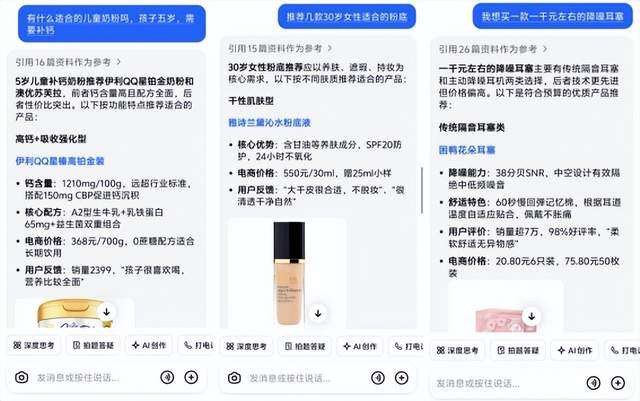 阿里坐拥通义、夸克等AI APP,又有淘天电商生态,将两者互相打通,在技术和产品上可谓轻而易举。但时至今日,通义、夸克等均不提供商品链接,只提供产品介绍、购买建议和用户体验分享等。