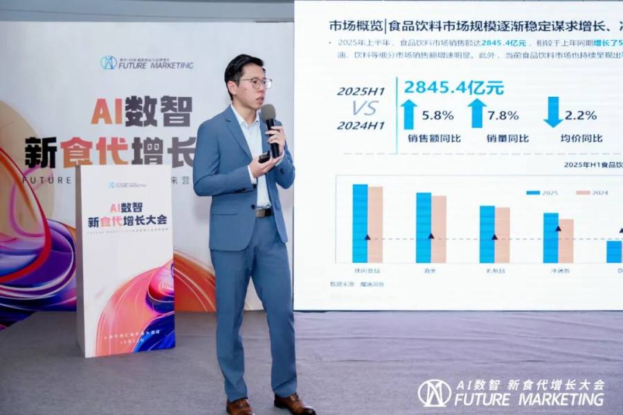 魔镜洞察高级分析师曾仕坤在下午的开幕演讲中指出:2025年的中国食品饮料市场正从一个普适性的大众市场,演变为一个由多元化、精细化需求构成的 “碎片化”市场。成功的关键在于企业能否真正理解并快速响应这些深刻变化的消费趋势,用 “科技+洞察” 打造出同时满足消费者“胃、心、魂”的下一代产品。