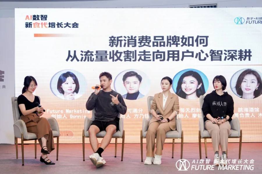 下午圆桌讨论环节,Future Marketing创始人Bonnie、可可满分创始人方乃锃、每天烈刻创始人廖虹琳、跳海酒馆拓展负责人木木 围绕新一代消费品牌如何在看似红海的成熟市场中,通过精准洞察、差异化定位和创新模式,找到结构性机会并实现增长等话题展开圆桌对话。为新消费品牌如何从流量收割走向用户心智深耕提供了多维度的洞察分享。