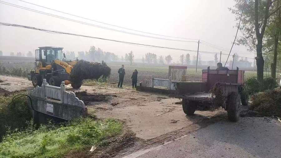 及时清运秸秆,消除焚烧隐患。坚持“源头治理、彻底清除”原则,将秸秆清运作为禁烧工作的关键环节抓实抓细。全镇统筹发力,组织各村调配机械与人力攻坚:累计动用秸秆粉碎机、清运车等机械100余台,发动镇村工作人员200余人,对田间地头、沟渠路边堆积的秸秆开展全域清理。严格落实“离田、离路、离沟”要求,确保实现田间净、路旁净、沟渠净。同时设立秸秆集中堆放点,安排专人管理,定时清运,从源头上避免产生新的焚烧风险点。此次扎实有效的清运工作与前期的广泛宣传、中期的严密巡查相互衔接、层层推进,通过“宣传+巡查+清运”的闭环举措,切实筑牢全镇秸秆禁烧的坚固防线。