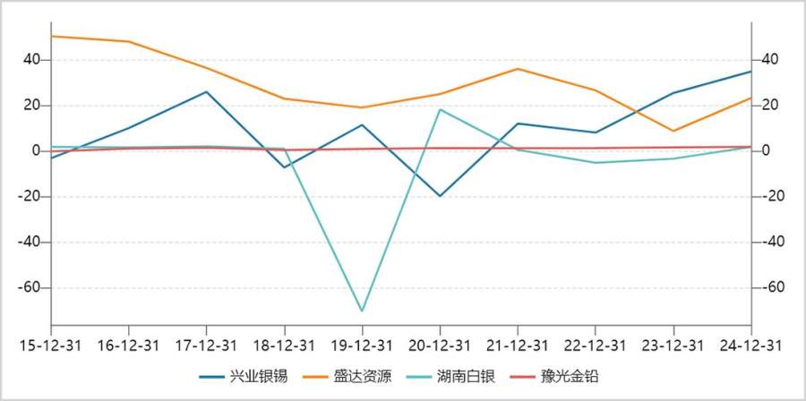 2025年上半年,兴业银锡、盛达资源、湖南白银、豫光金铅净利率分别为31.7%、11.4%、1.4%和2.2%。显然,中游赚取的是加工费,属于低毛利制造业,生意模式远不如上游。