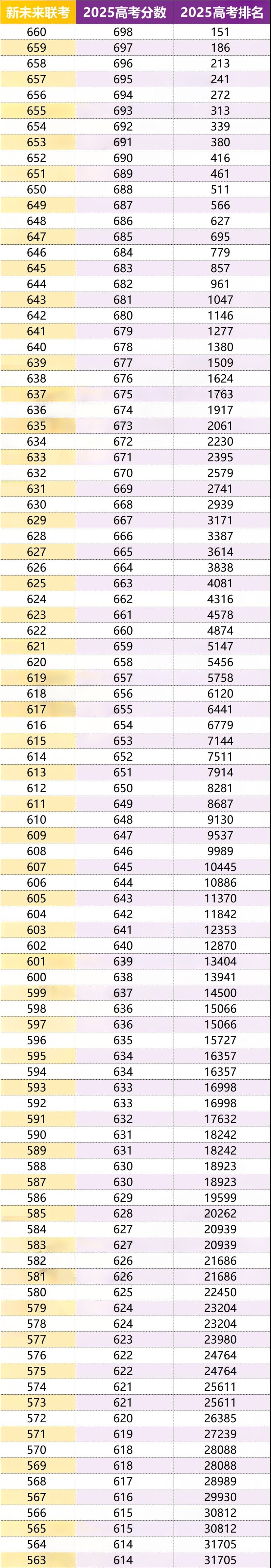 【联考数据】2025年10月20日高三年级新未来联考分数线与分段表