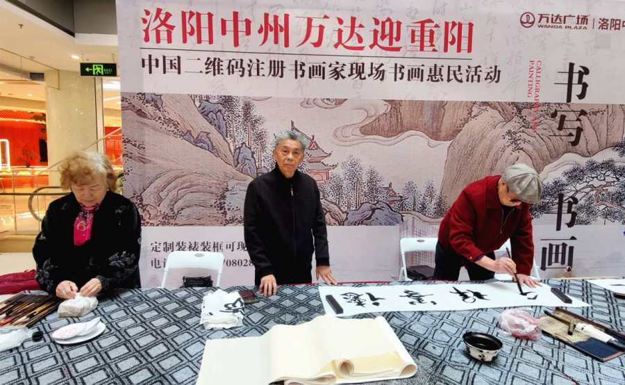 金秋送爽,丹桂飘香。在重阳佳节即将来临之际,2025年10月25日,一场兼具文化温度与艺术魅力的“迎重阳书画惠民活动”启动仪式,于洛阳市中州万达商超2号门大厅温情举行。此次活动由洛阳翰风毛韵书画院精心策划,汇聚中国二维码注册书画家群体,为古都洛阳的秋日增添了一抹浓厚的文化亮色。