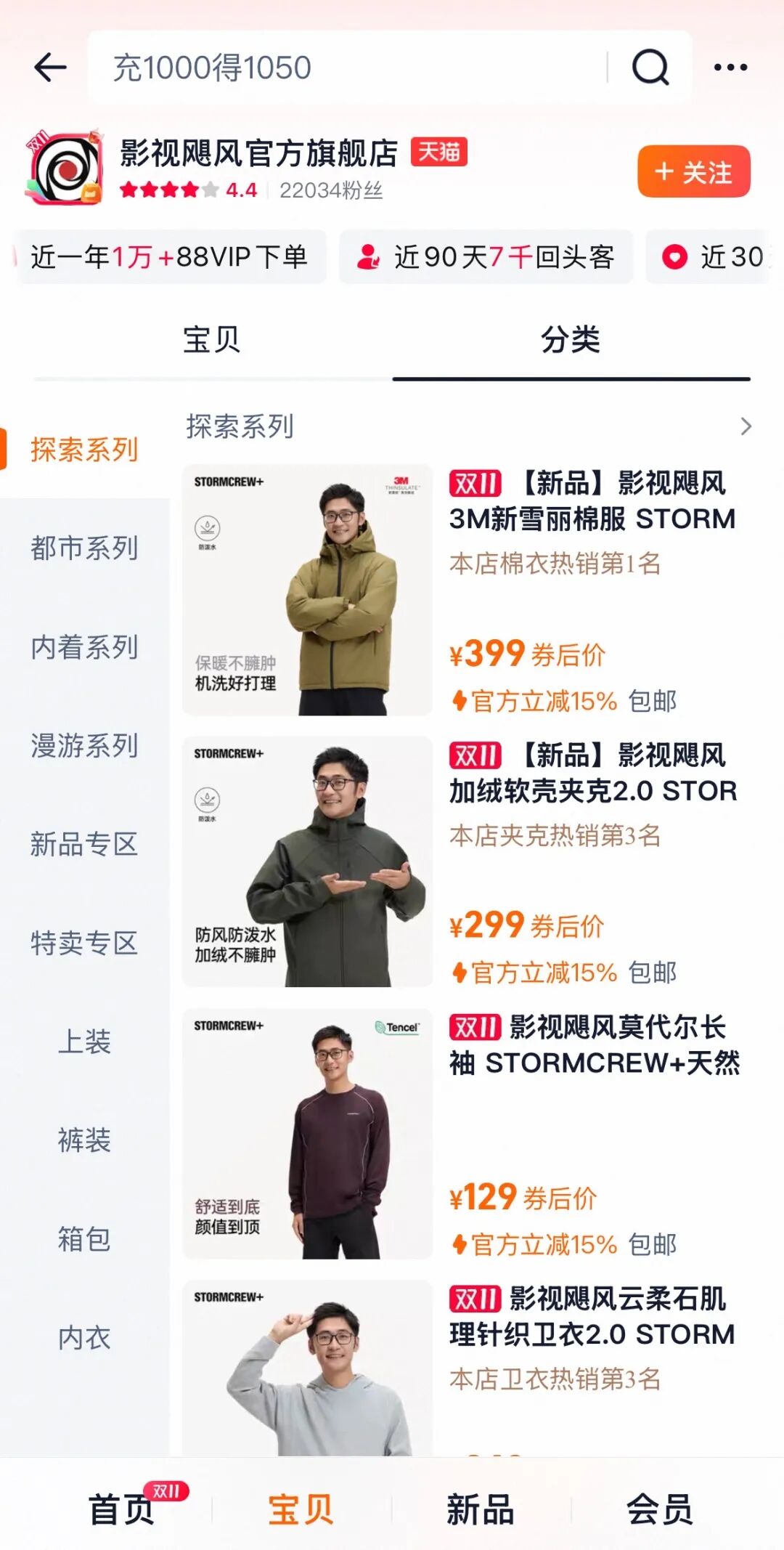 四年的筹备加上一年多的发力,STORMCREW的三合一冲锋衣、“降噪”长袖T恤、内裤等产品,也都有不低的声量和销量,只不过还远不及“凉伴”T恤。