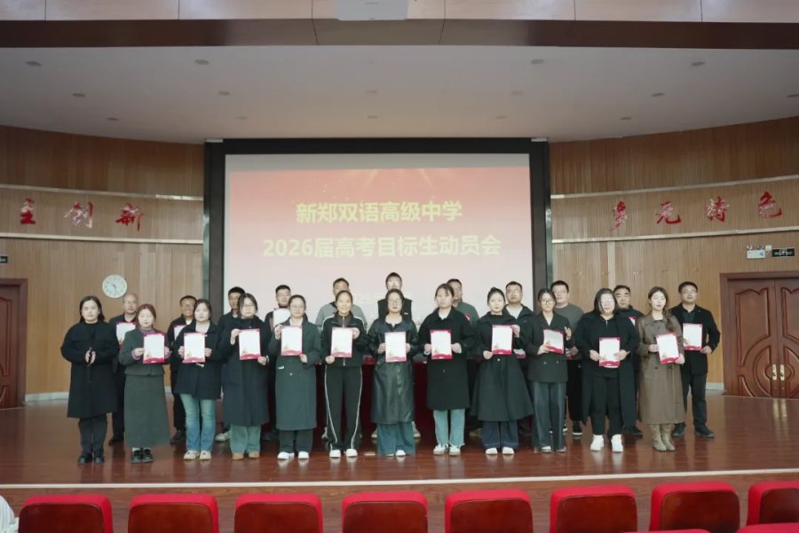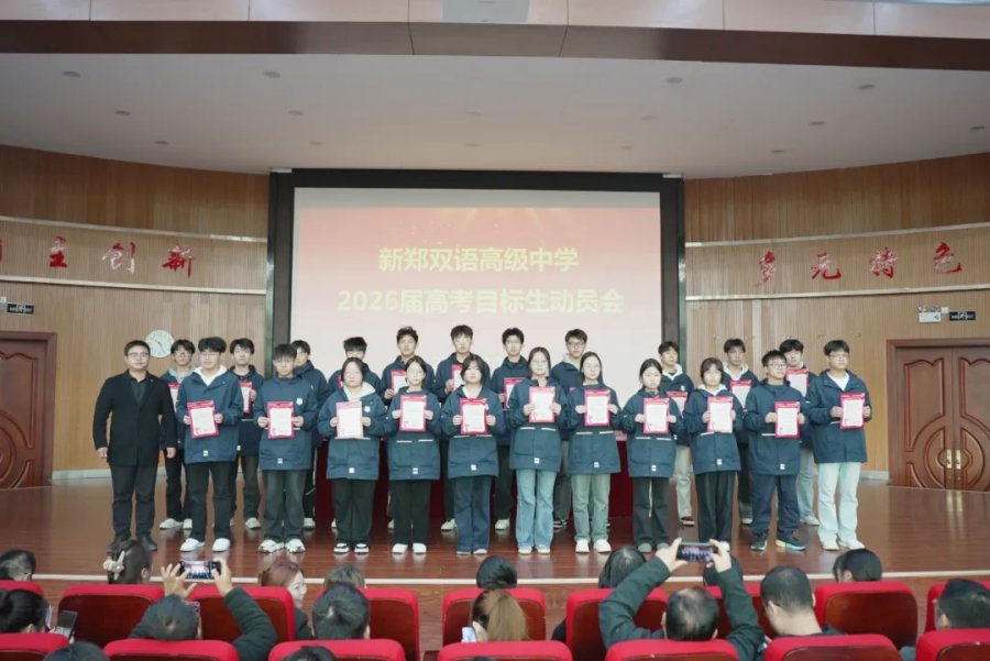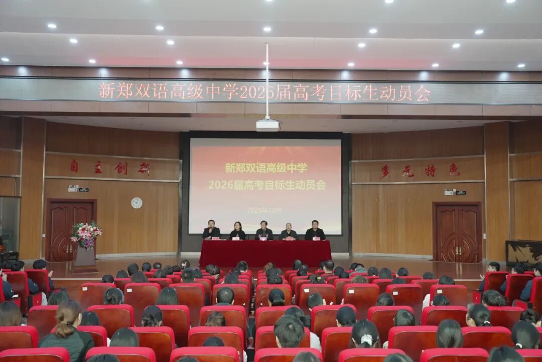 旌旗扬斗志,战鼓催征程。为进一步激发高三学子奋战高考的斗志,10月24日,新郑双语高级中学隆重召开2026届高三年级目标生动员会议。学校校长王连照,副校长闫辉,教务处主任李越、高三年级主任吴东东、穆俊伟及高三师生齐聚一堂,厉兵秣马,蓄势待发,共同为冲刺高考吹响冲锋号角,会议全程紧凑有序、振奋人心。