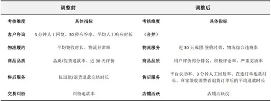 商品品质考核的升级最为明显。此前,平台仅关注品质退款率、假货退款率及近30天评价,商家只要控制好退款数据,基本能满足要求。而调整后,考核指标变为近90天用户评价得分排名、近30天积极评论率、近30天严重劣质率。这三项指标需要商家主动经营用户口碑,例如部分商家为了提升积极评论率,不得不推出好评返现活动,额外增加成本。