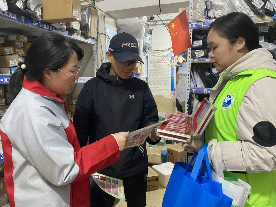 随着“双十一”购物节临近,物流快递行业即将迎来年度业务高峰。为有效预防毒品利用寄递渠道流通,提升物流从业人员的识毒、防毒、拒毒能力,10月28日,在郑州市公安局禁毒支队的指导下,中原分局禁毒大队联合棉纺路街道办事处、悦荣禁毒社工,主动将禁毒宣传阵地前移,深入四棉西社区辖区内菜鸟驿站、社区团购等快递末端服务网点开展禁毒宣传活动。