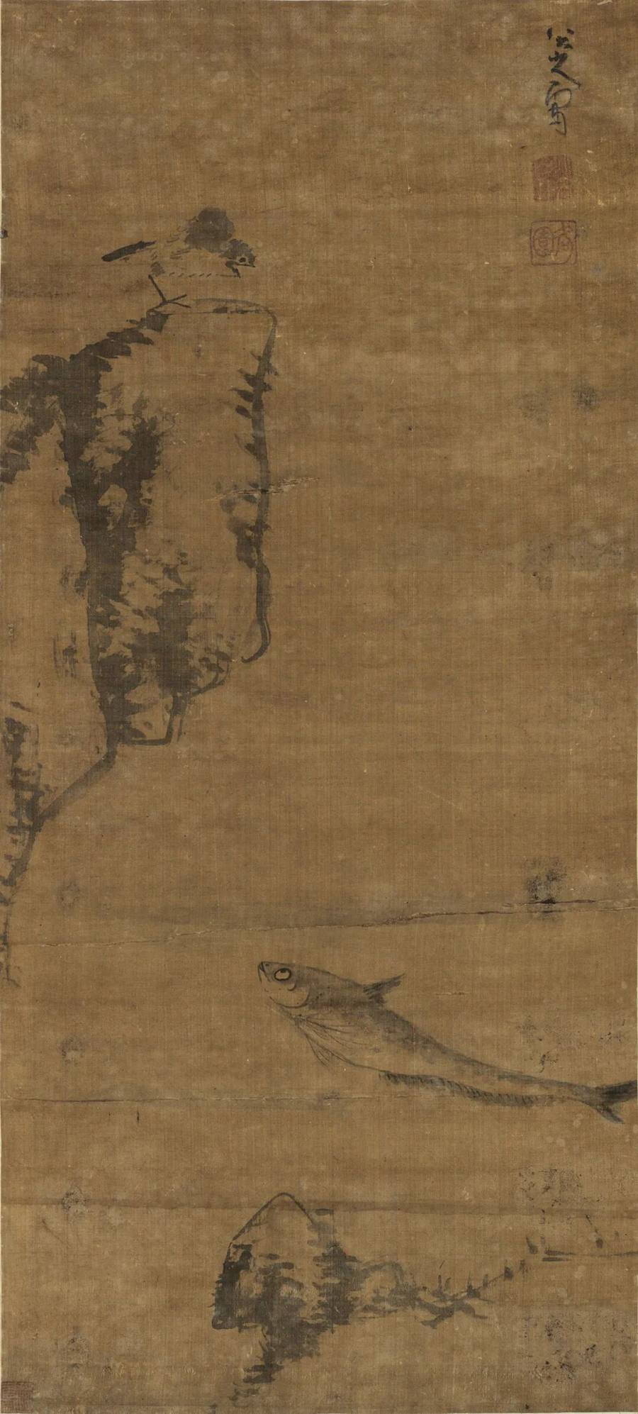 朱耷《鸣鸟游鱼图》