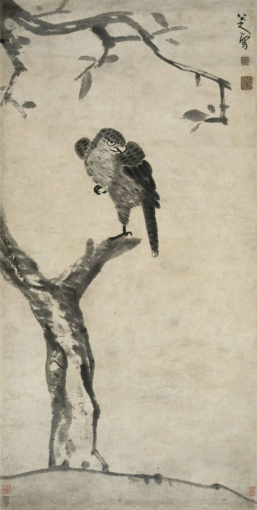 朱耷《枯木立鹰图》