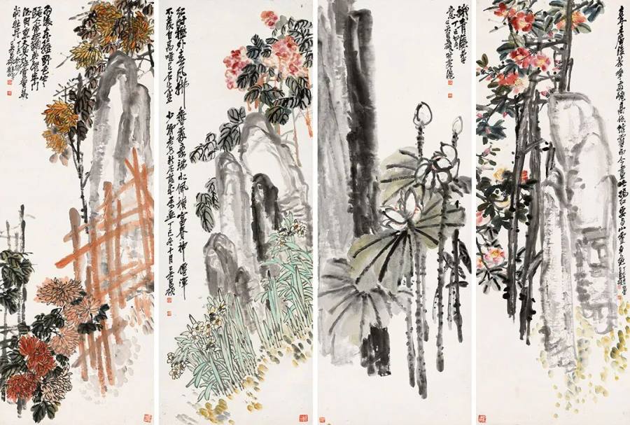 吴昌硕《四季花卉图》