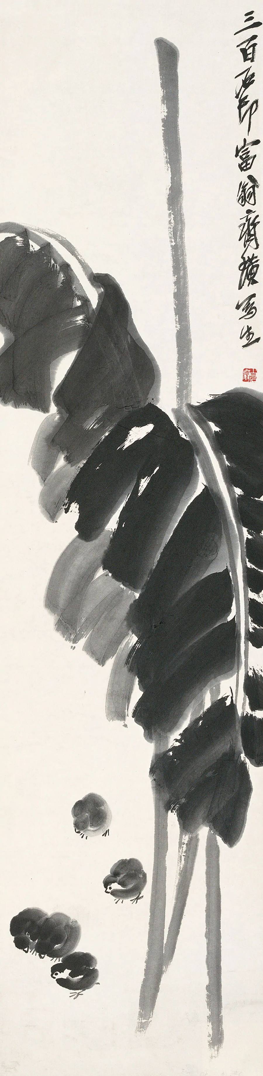 齐白石《小鸡芭蕉》