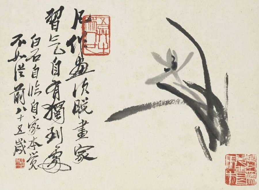 齐白石《衰年泥爪花卉册》之兰花
