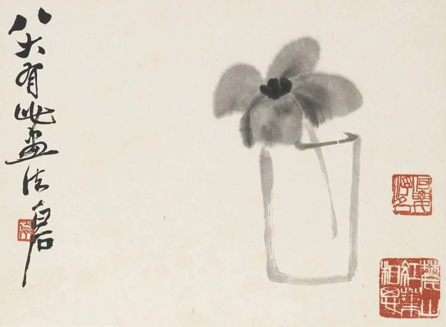 齐白石《衰年泥爪花卉册》之杯花