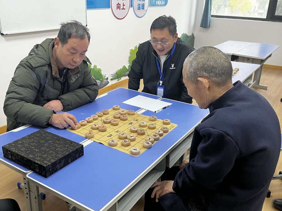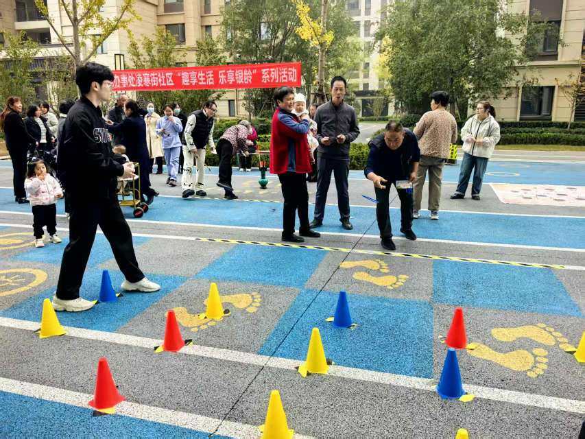 活动现场气氛热烈,欢声笑语不绝于耳。一系列精心设计的互动游戏吸引了众多老年人踊跃参与:“趣味投壶”“筷子夹乒乓”“套圈赢好礼”“幸福滚滚乐”“重走长征路”“棋王争霸赛”等项目精彩纷呈。尤其在“重走长征路”环节,大家齐心协力、互帮互助,共同完成了象征胜利的“会师”;而在“套圈赢好礼”区域,老人们目光专注、手法娴熟,一个个套圈在空中划出优美弧线,精准命中目标,赢得阵阵掌声与喝彩。