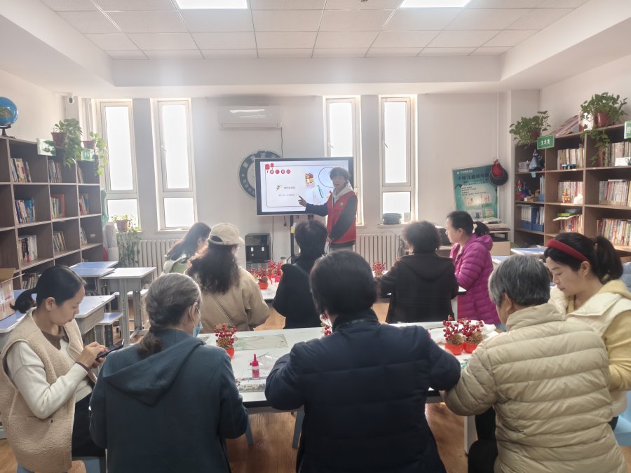 活动现场暖意融融,老人们早早来到现场。社工和志愿者有条不紊地为大家登记信息,并逐一发放手工团扇材料包——包括素色宫扇、多样干花包、环保酒精胶等工具。随后,社工手持提前制作好的干花宫扇样品,详细讲解制作技巧:从干花搭配构图,到酒精胶的用量控制,再到花瓣粘贴的按压手法,每一个步骤都耐心演示,还针对老人们的疑问逐一解答。