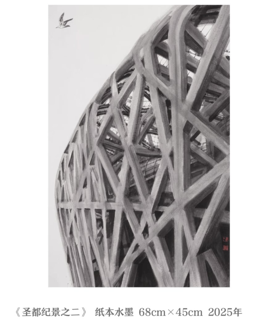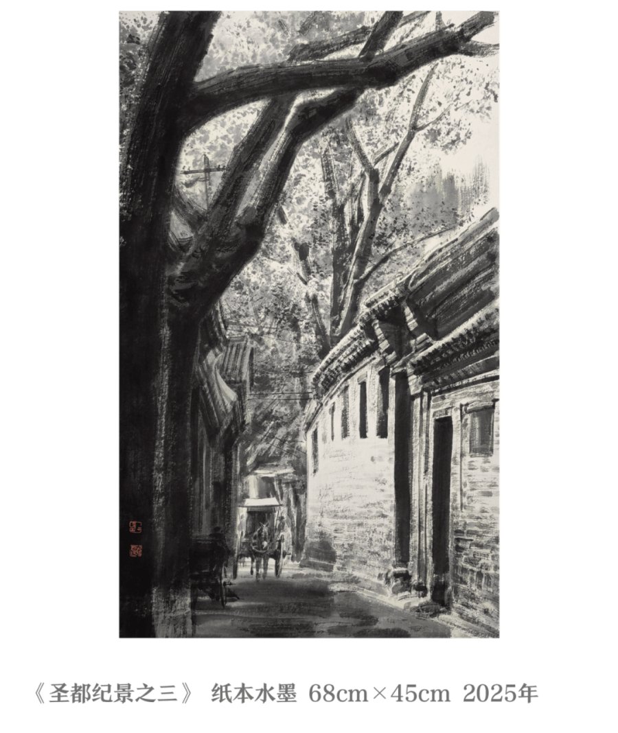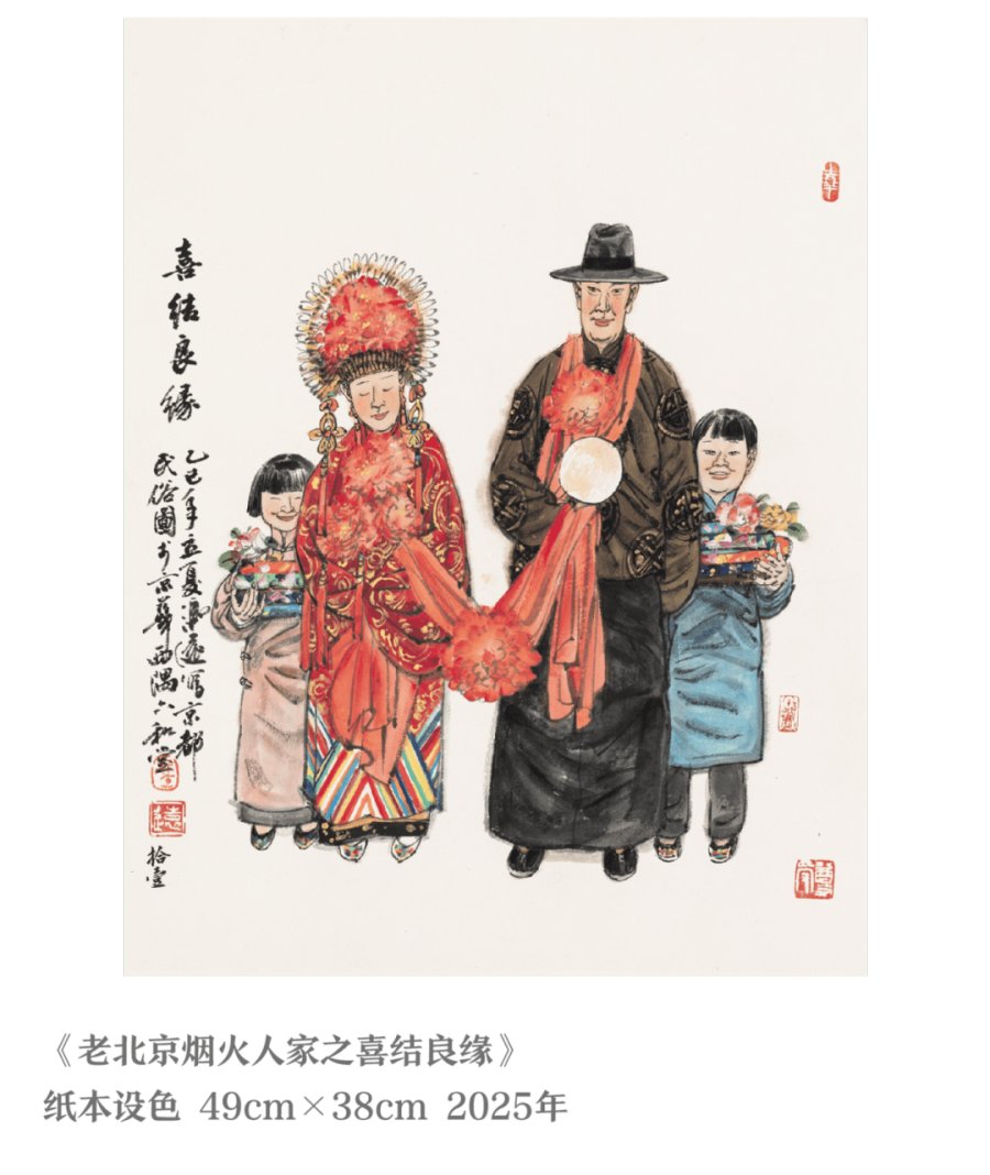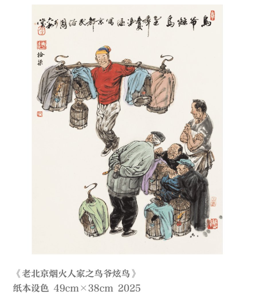 “古都纪景”以古今北京为画卷,在时空交响中钩沉古都文脉;“浮生写心”捕捉华夏各族儿女的神韵,于质朴形象中书写生命本真;“先贤遗音”对话往圣先贤,以笔墨为载体重现高逸的精神图景;“天地有情”则寄情草木山川,在自然意象中叩问宇宙生机。 四个篇章虽题材各异,却共同构筑了一个气象万千、融汇天人的艺术世界。