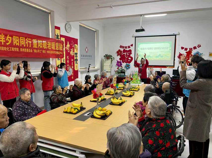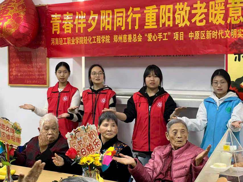 金秋送爽,丹桂飘香。在重阳佳节即将到来之际,为弘扬中华民族尊老敬老的传统美德,10月28日下午,郑州慈善总会“爱心手工”项目联合中原区新时代文明实践中心、河南轻工职业学院轻化工程学院一同走进郑州市中原区金桐养老院,共同举办“青春伴夕阳同行,重阳敬老暖意融”慈善公益主题活动。活动通过文体互动、健康科普与暖心慰问等形式,为老人们送去节日的欢乐与社会关怀,生动诠释了“我们的节日·重阳”的文化内涵,营造了孝亲敬老的浓厚氛围。