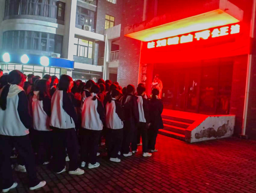 为进一步加强校园消防安全管理,提升师生应对突发火灾的应急疏散和自救能力,2025年10月28日晚8:00至9:00,郑州市信息技术学校(郑州市第十中学)组织全体住校生开展了一场紧张有序的夜间消防疏散演练。学校副校长朱荣涛、政教处主任张坤全程参与并指导演练工作。