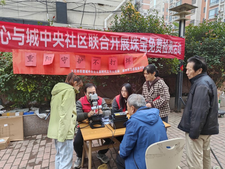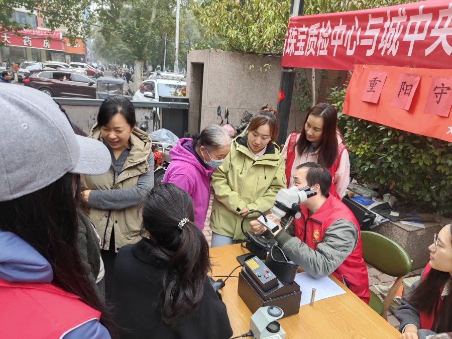 岁岁重阳,今又重阳。为丰富社区老年人精神文化生活,提升居民珠宝消费维权意识,10月28日,河南省珠宝质检中心联合大石桥街道城中央社区新时代文明实践站,开展“重阳守护不打烊”免费珠宝鉴定与科普活动,将专业服务送到居民“家门口”。