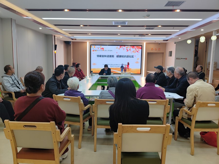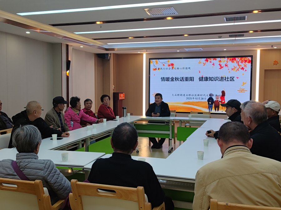 金秋送爽,丹桂飘香。在一年一度的重阳佳节来临之际,为弘扬中华民族尊老、敬老、爱老、助老的传统美德,关爱社区老年人的身心健康,10月28日下午,大石桥街道石桥社区新时代文明实践站在街道养老服务中心,成功举办了一场以“情暖重阳,健康相伴”为主题的重阳节健康养生知识讲座,吸引了辖区众多老年朋友踊跃参与。