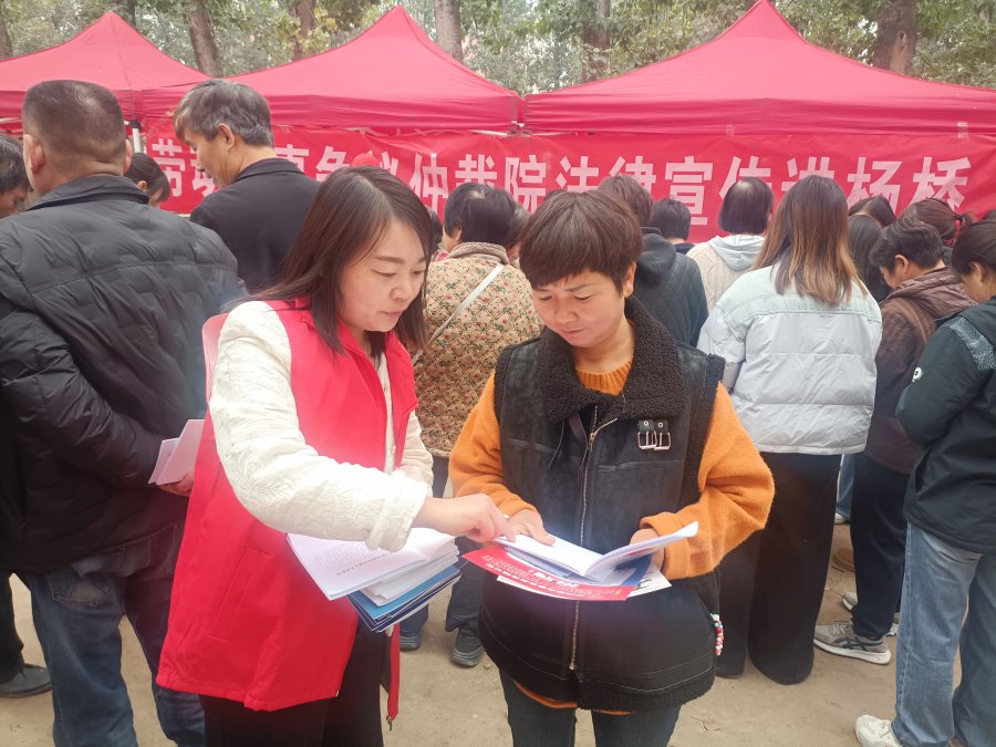 为进一步宣传普及《劳动法》《劳动合同法》,推动普法宣传走进基层、走近群众,增强群众的法治观念和维权意识。10月28日,郑东新区人事争议仲裁院联合杨桥办事处开展丰富多彩的法律、法规宣传活动,把法律法规宣传、公平正义送到群众身边。推动调解仲裁工作应民心、解民忧、惠民生,为构建和谐劳动关系保驾护航。