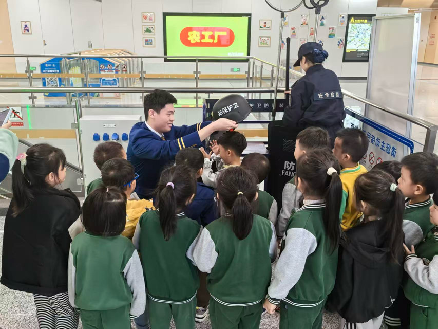 紧接着,工作人员将装有水杯、刀具等违禁的书包放在上安检机通过,屏幕上危险提醒的成像引发孩子们的惊叹。“原来安检机就像‘二郎神的天眼’一样能发现危险的东西呀!”一位小朋友兴奋地说道,现场一片哗然,孩子们在轻松愉悦的氛围中对地铁安检“逢包必检、逢液必查”的必要性有了初步认知。