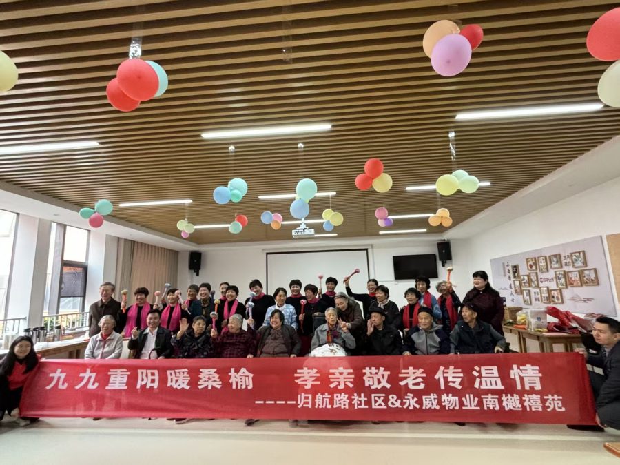 10月29日,在这个满载敬老温情的节日里,归航路社区联合悦华安养院、永威禧苑物业,共同举办“情暖重阳 艺韵相伴”主题活动,以多方致辞、节日慰问、文艺汇演、互动教学等丰富形式,为辖区老人送上专属节日祝福,用实际行动谱写新时代敬老爱老新篇章。