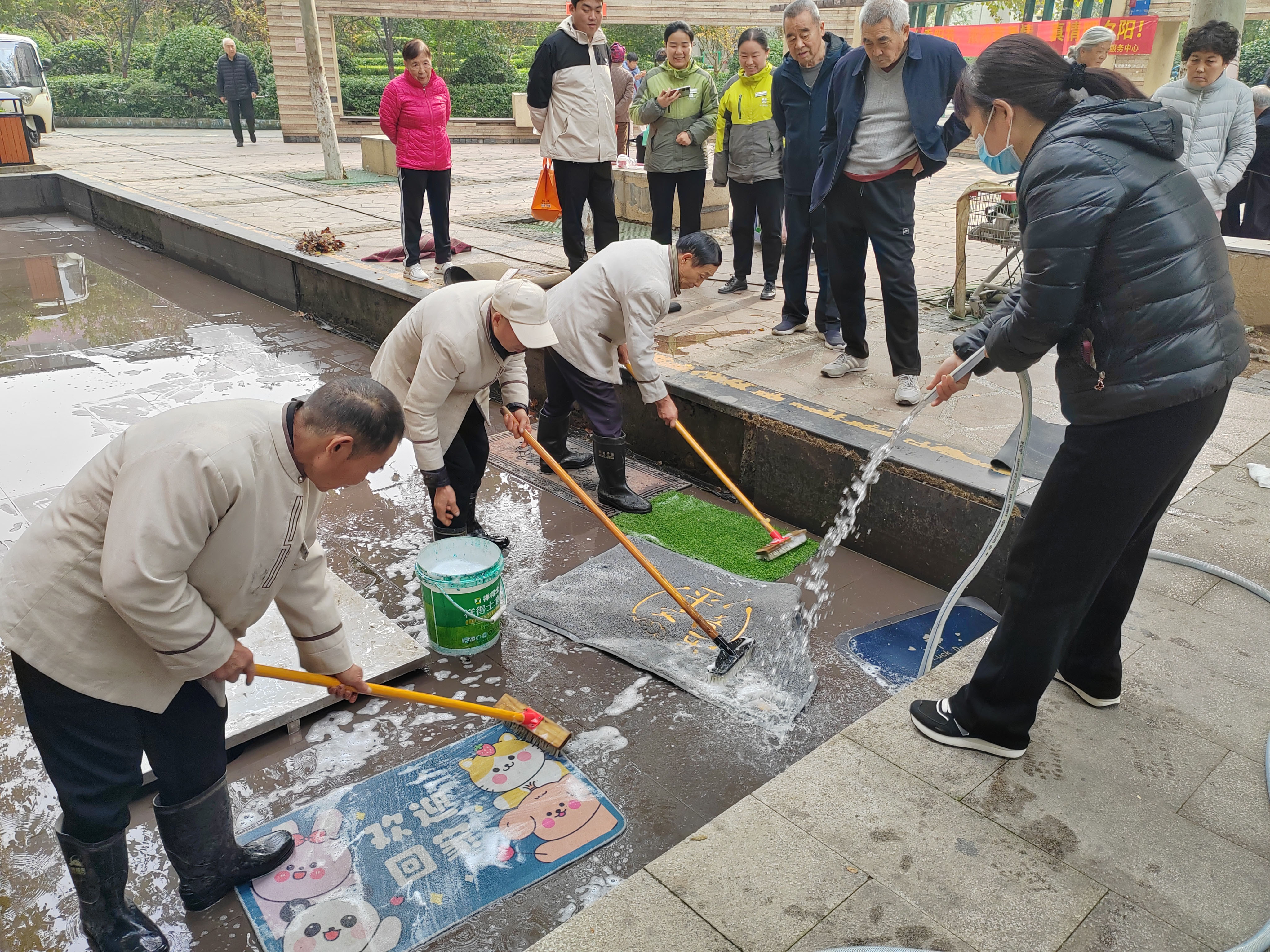 另一边,地垫清洗区同样热闹非凡。志愿者们用高压水枪、刷子等工具,为居民免费清洗脏污地垫。看着原本灰扑扑的地垫变得洁净如新,居民李女士感慨:“社区连这种小事都替我们想着,真是把服务做到了心坎上。”