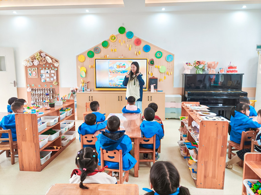 活动以“文化浸润—情感萌发—行动表达”为脉络层层铺展。在“重阳文化小课堂”上,教师们借助故事、动画、图片等童趣载体,为幼儿解析重阳节的渊源,讲解登高、赏菊、敬老等习俗的文化意涵,并引导幼儿围绕“身边的长辈”展开讨论,在稚嫩的交流中感知长辈的默默付出,为后续的情感共鸣与行为实践筑牢文化根基。