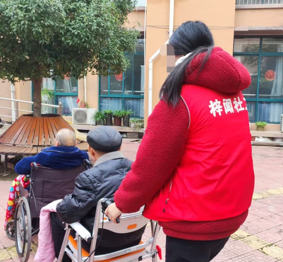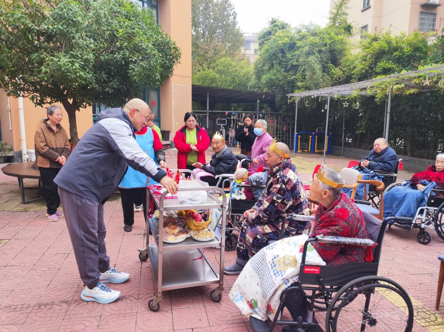 活动现场,小花不仅积极投入,认真搬运座椅、布置场地,更在文艺表演时主动关注老人们的安全,及时提供帮助,结束后还细心为行动不便的老人分发、喂食蛋糕,并耐心陪伴聊天。这份体贴不仅温暖了现场,也让小花自己体会到生命藏着这么厚重的意义。