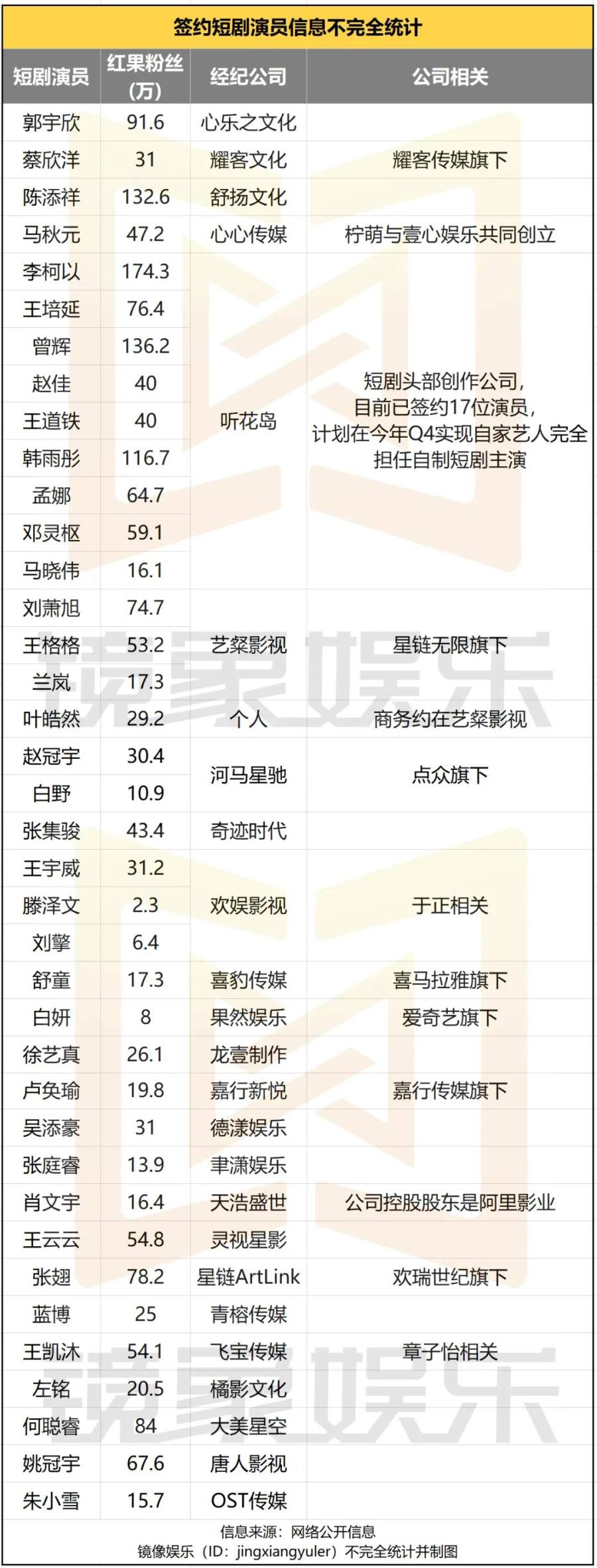 不过,无论是听花岛,还是坐拥马厩制片厂的星链无限,它们的艺人经纪建立在自身不俗的短剧创作能力之上,这一点相对难以复制。相比之下,更多短剧公司在发展演员经纪这条路上,选择的打法类似于之前培养练习生的思路,不少公司都通过扩大签约演员规模,以量取胜。