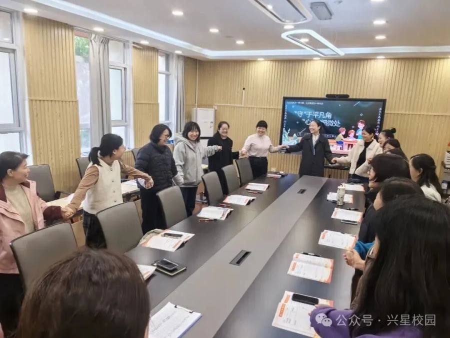 为帮助班主任缓解工作压力,以更轻松的状态投入后续工作,心理老师王娜在会议尾声带领全体人员开展互动小游戏。游戏以“协作解压”为核心,增进彼此默契。简单有趣的环节不仅舒缓了紧张情绪,更让班主任们感受到团队支持的温暖。