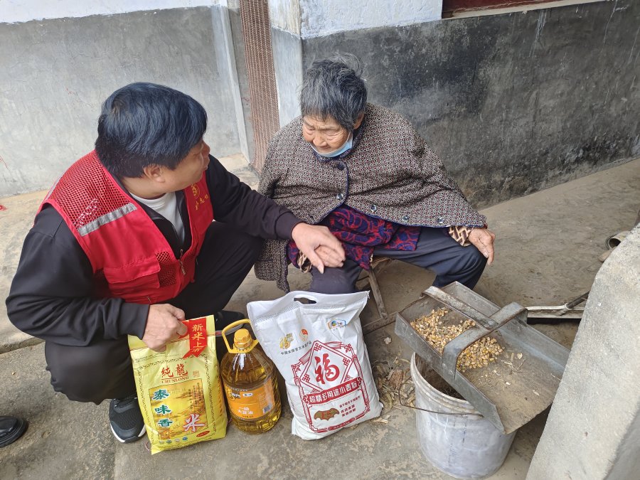 在观音寺十里铺,80岁的李奶奶家中欢声笑语。志愿者们不仅送来了米面油,还帮老人检查家中的用电安全。