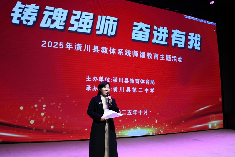 活动伊始,晏杨代表县教体局致辞。他指出,师德是教育工作的灵魂所在,是立教之本、兴教之源,更是新时代教育高质量发展的根本保障。他强调,“铸魂强师”,核心是铸牢为党育人、为国育才的忠诚之魂,关键是强化立德树人、培根铸魂的育人本领;“奋进有我”,深刻彰显了新时代教育工作者勇担使命、砥砺前行的责任担当与精神风貌。近年来,全县教体系统始终将师德师风建设摆在教师队伍建设的突出位置,通过常态化开展专题教育、系统选树先进典型、健全完善评价机制等一系列务实举措,推动师德建设走深走实、落地见效。他希望参与教师以真实感人的教育故事、深刻独到的教育感悟,生动诠释师德内涵,展现潢川教体人的教育温度与责任情怀,激励广大教师在聆听中汲取力量,进一步锤炼师德修养、提升专业素养,努力成为学生锤炼品格、学习知识、创新思维、奉献祖国的引路人。